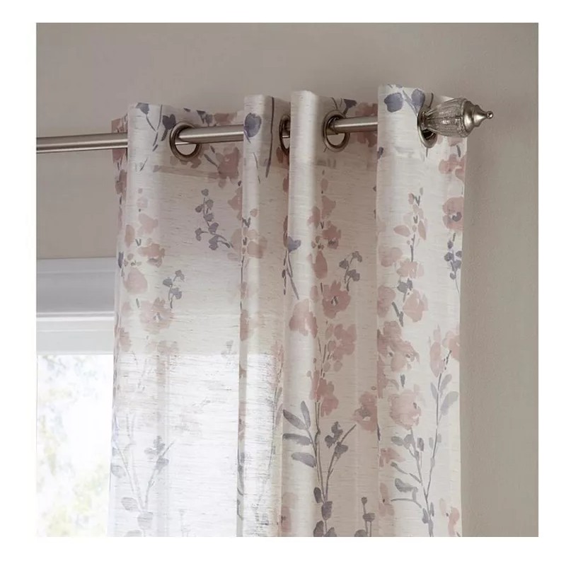 Allen + Roth 84-in Candian Blush Floral Semi-sheer Grommet Single Curtain Panel