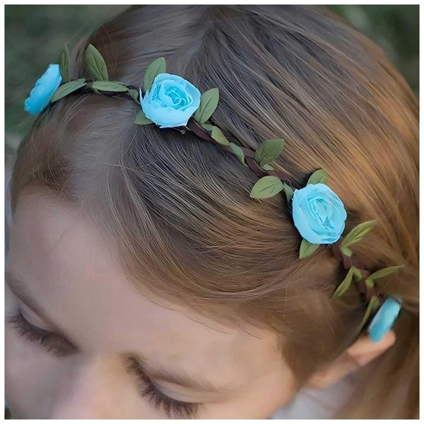 Allereyae Flower Hairband Blue Floral Hairbands Flower Crown Headband Floral Headpiece Headband Artificial Rose Hair Wreath Adjustable Elastic Hair Band Bridal Wedding Accessories Jewelry for Women