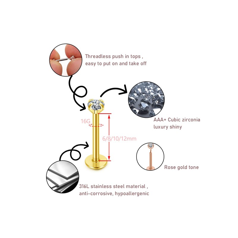 - Value package: one order contains 5 pairs of labret stud earrings with internal thread. Perfect to wear as lip rings, Medusa monroe piercing, tragus piercing, forward helix earrings, cartilage earrings, nose studs, tongue piercing and other body piercings