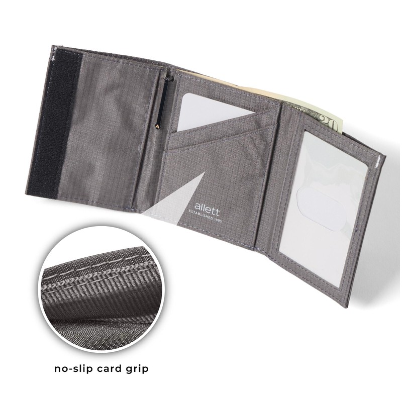 Allett Trifold Wallet | Nylon, RFID Blocking | Slim, Minimalist, Water Resistant, Thin, Front Pocket | Holds 2-12 Cards, Flat Bills, Receipts & Coins | For Men & Women, Charcoal Grey, Nylon Edition