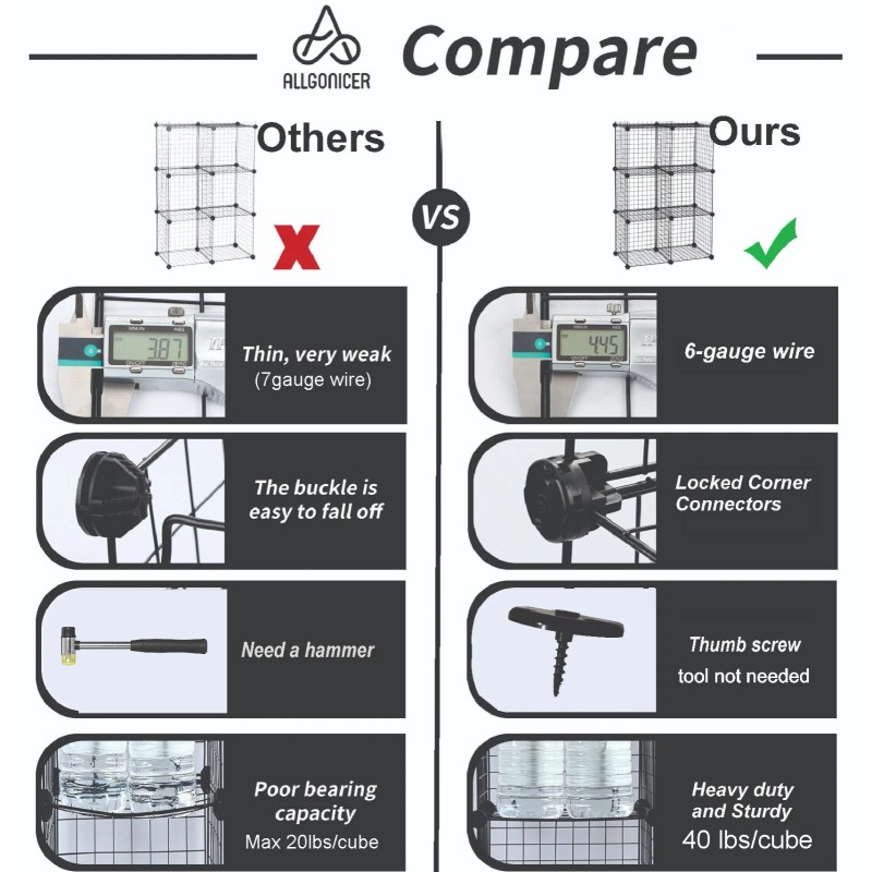 - 14" x14"x14" larger size Wire cubes made of Gauge-5 frame wire and 9x9=81 grids each panel. Designed for lang-last and 40lbs weight bearing. what you pay what you get.