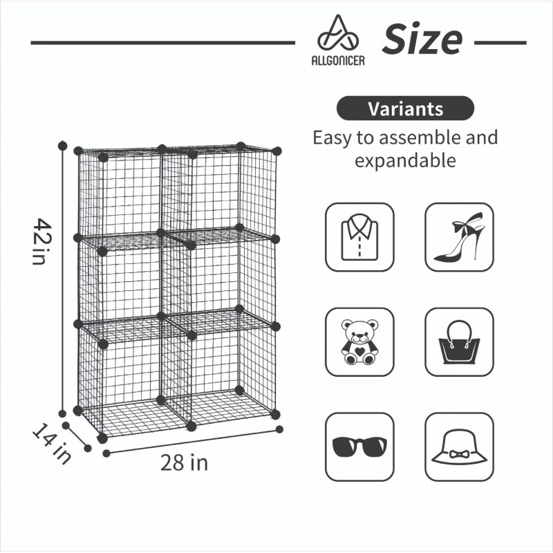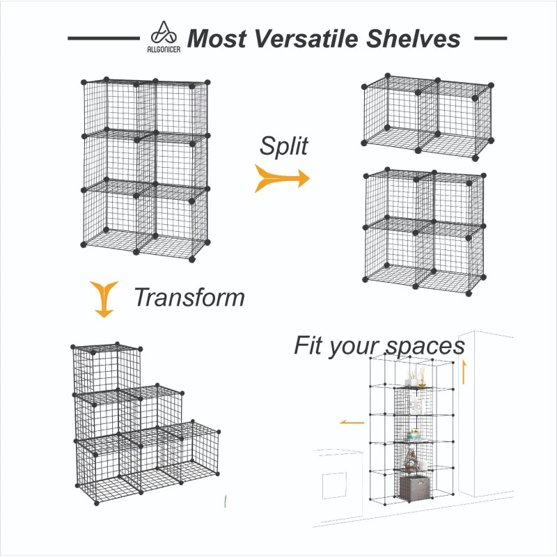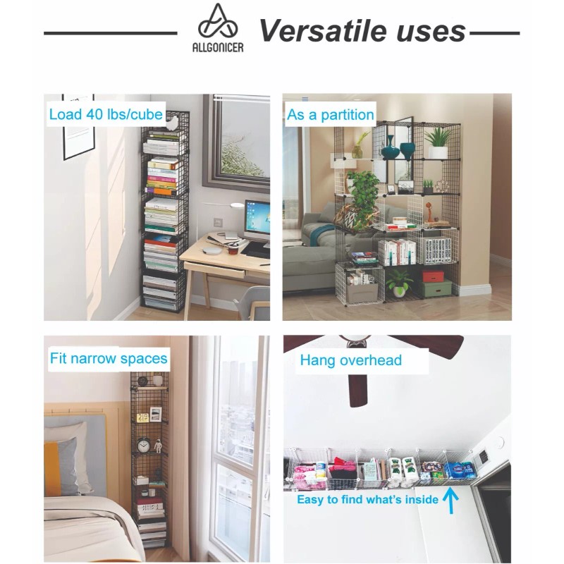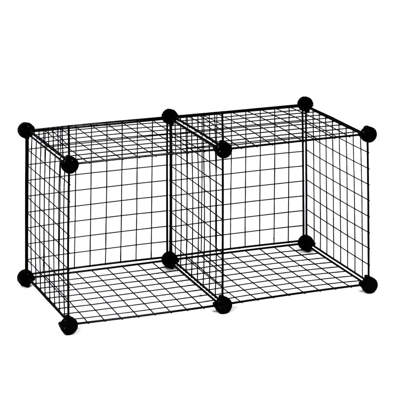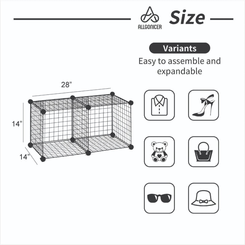 Allgonicer Wall-mount Floor-stand interlock 14" Wire Cube Storage Rack Organizer Bookshelf - Black/2 cubes
