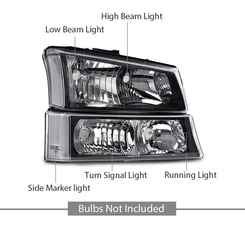 ALLGOOD Headlights, Compatible with 2003-2006 Chevy Silverado 1500 2500 3500 HD Models/2003-2006 Avalanche 1500 2500(Fit No Cladding only) Clear Lens Black Housing Clear Corner
