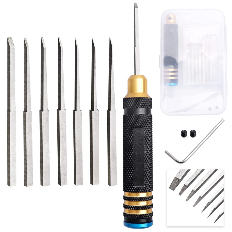 AllinRC Hobby Knife Blades Set 0.1mm 0.2mm 0.4mm 0.6mm 0.8mm 1.0mm 2.0mm with Handle Hobby Building Tools Craft Set for Basic Model Building, Cutting, Repairing and Fixing