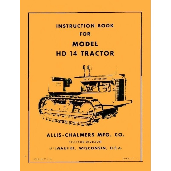 The Allis Chalmers HD 14 Crawler Tractor Operators / Instruction Manual. This is a Reproduction of an original manual is an excellent source of information on using your tractor and covers maintenance and many general mechanical repairs. The operators / instruction manual gives the tractor owner / operator instructions on;
