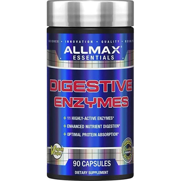 ✨🌿 Allmax Enzimas Digestivas (90 Cápsulas) – ¡Digestión Óptima y Máxima Absorción! 📈💊 Suplemento sin sabor con amplio espectro de enzimas para descomponer alimentos, reducir hinchazón y maximizar nutrientes. ¡Bienestar digestivo total! 🌟🧘♀️