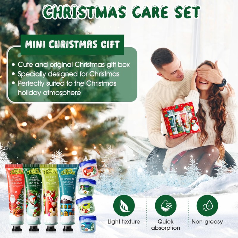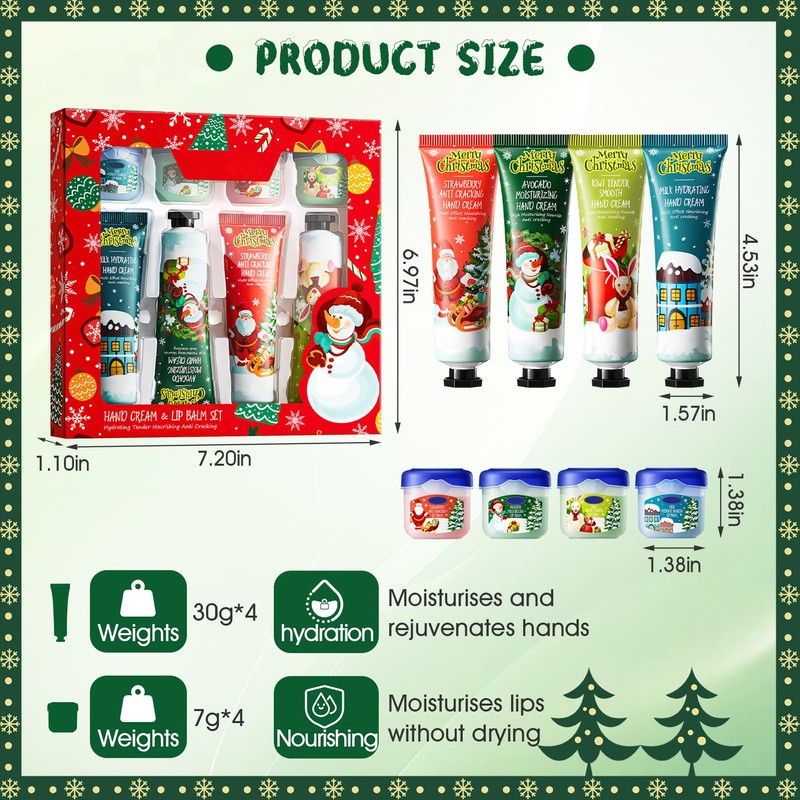 Allony Mini Hand Cream Christmas Set, 4 Pieces Christmas Hand Cream + 4 Pieces Lip Balm, Hand Cream for Very Dry Hands, Hand Cream Set Christmas, Gift Set for Christmas and Birthday