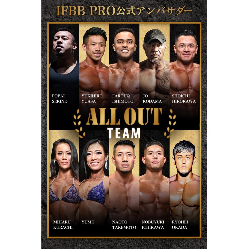 • Used by IFBB PRO and Many Other Athletes: Supervised by Japanese representative bodybuilder Kikuo Asano.The ALLOUT brand is used by IFBB PROs Farouq Ishimoto, Yukihiro Yuasa, Naoto Takemoto, Popai Sekine, Shoichi Hirokawa, Nobuyuki Ichikawa, Miharu Kurachi, YUME, Kansai Top Physique Naoto Nakamura and prominent Japanese top physiques.