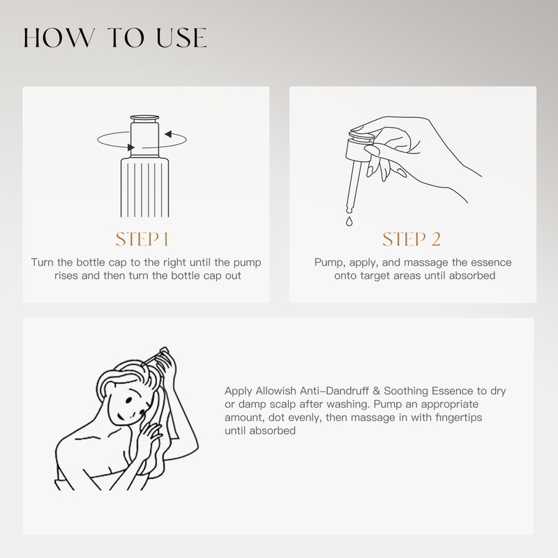 1. Morning: Apply 3 drops to damp scalp before blow-drying (Heat enhances absorption)