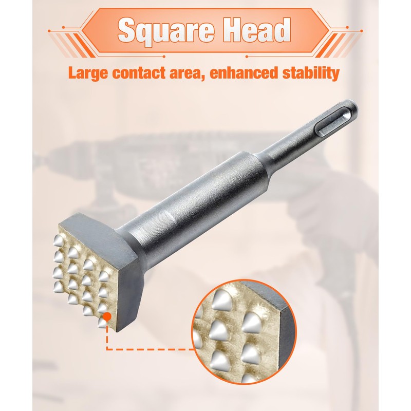 • EFFICIENT AND LABOR SAVING Use the bit of the housing drill bit to polish and trim the concrete with superior performance, high efficiency and labor saving. Please note: pay attention to strength and skills. Stabilise the tool and maintain the strength perpendicular to the work surface. Used to hammer and beat, do not twist.
