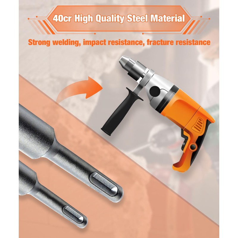 • High-quality alloy steel: drill with SDS slot is made of high-quality 40cr steel material with good hardness and is not easy to wear or deform after long-term use. 16-tooth alloy is firmly welded, effective and fracture resistant. It is your excellent hammer drill