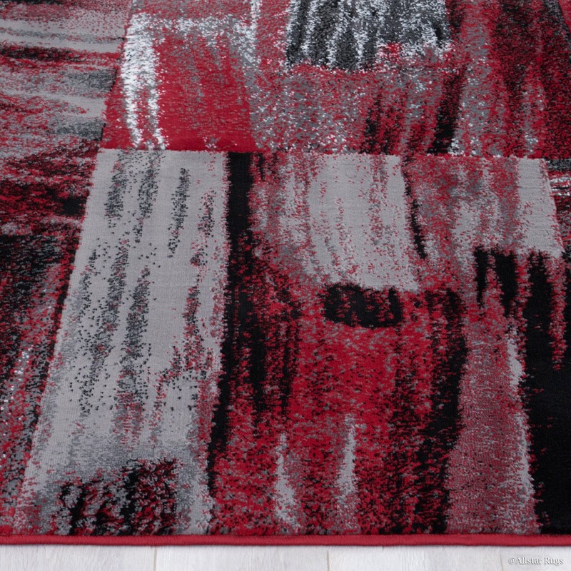 Allstar 5x7 Red and Grey Modern and Contemporary Rectangular Accent Rug with Gainsboro and Charcoal Abstract Bidirectional Brush Design (4' 11 x 6' 11)