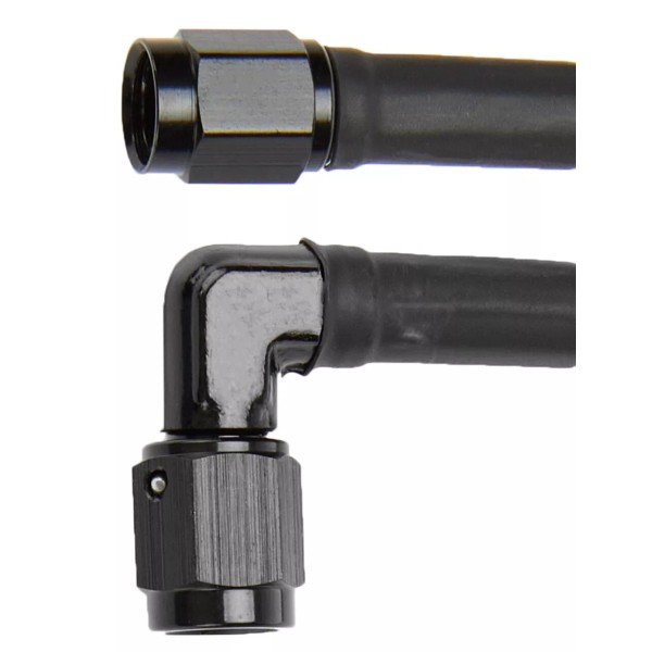Brake Hose 24” 3AN Straight-90 Braided Stainless Black Vinyl Coated PTFE Lined.