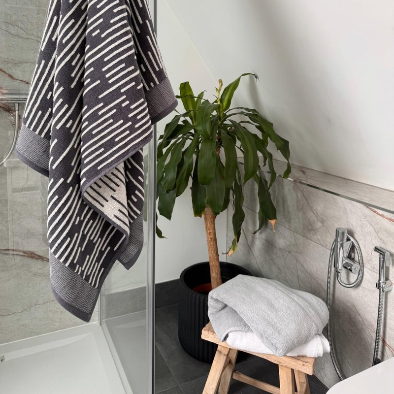 - Crafted from luxuriously soft cotton, these reversible striking barcode striped towels offer a blend of modern style and functionality. Available in hand towel, bath towel and bath sheet sizes to provide a co-ordinated look.