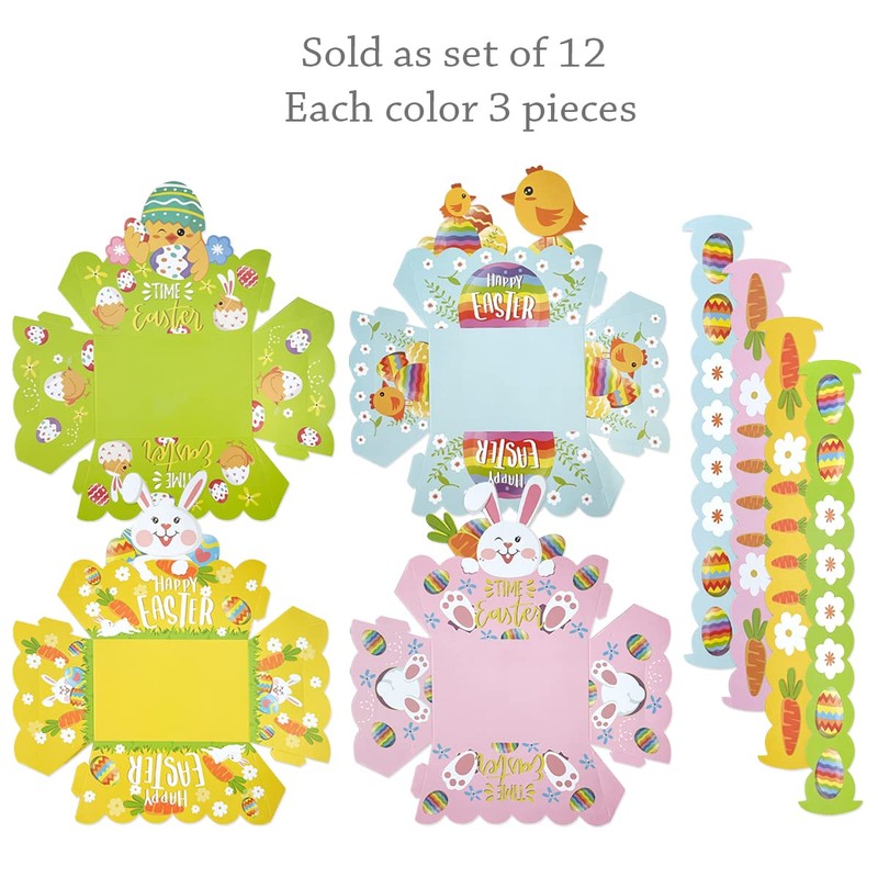 allydrew Easter Gift Baskets with Handle, Treat Boxes for Eggs, Cookies and Candy, Set of 12, Vibrant Easter Eggs