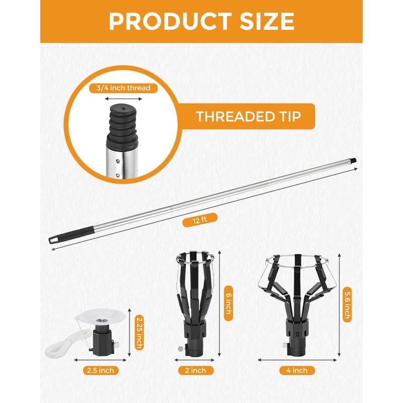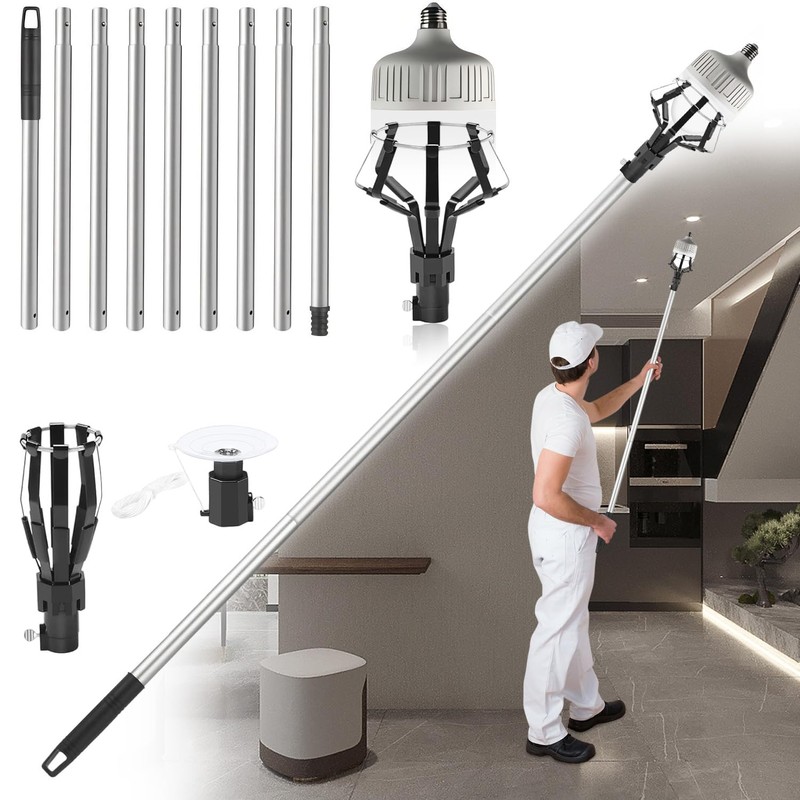 • 【Durable and Adjustable Light Bulb Changer】Our high ceiling light bulb changer features 9 extendable poles, each approximately 1.3 feet long (maximum length of 12 feet). Constructed from premium stainless steel, it is robust and resistant to bending, making it easy to replace hard-to-reach lights.