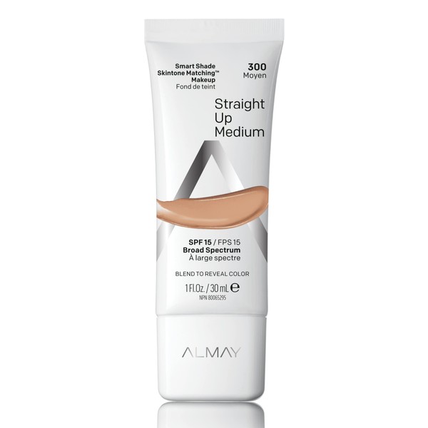 Almay Almay Skintone Matching Foundation, Smart Shade Face Makeup with SPF 15, Hypoallergenic, Oil-Free, Dermatologist-Tested, 300 Straight Up Medium, 1 fl oz