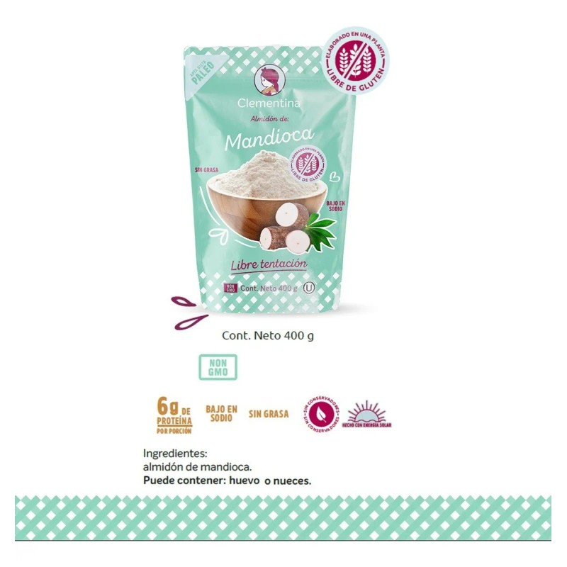 Almidon de Mandioca Fécula De Tapioca Sin Gluten Yuca Marca Clementina 400g Libre de Gluten Apta Dieta Paleo