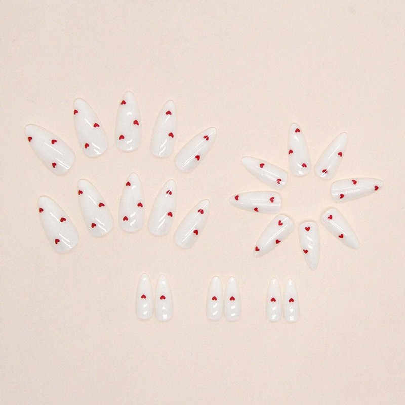 Almond Press on Nails Red Heart Designs Fake Nails Valentine Day Glue on Nails Medium Length Artificial False Nails Glossy Yogurt White Color Acrylic Nails for Women Manicure Art