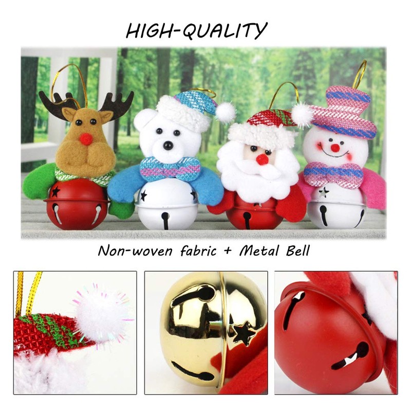 Alodidae Adornos de árbol de Navidad de, decoración de Navidad pequeña para el hogar, Felpa para Colgar con Campanas para árbol de Navidad, Santa/Snowman/Reno/Oso, 8PCs