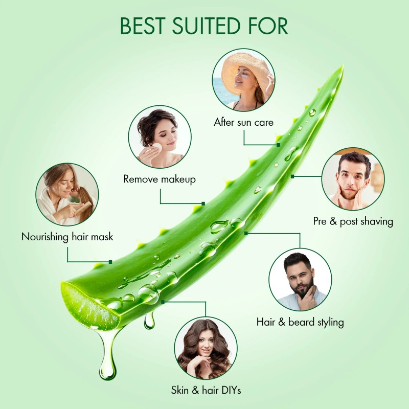 - Deep Hydration: Packed with water and essential nutrients, this Aloe Vera gel for face, body and hair deeply hydrates skin without feeling greasy. It absorbs quickly, providing long-lasting moisture, perfect for dry or parched skin.