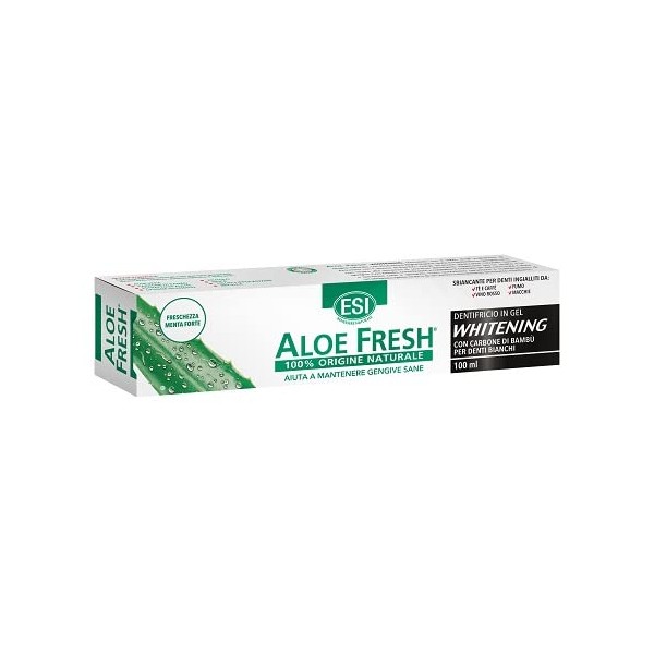 ESI - Aloe Fresh Whitening Description Gel Toothpaste with Bamboo Charcoal for White Teeth Formulated with 100% Natural Ingredients with Aloe Vera and Seaweed, Helps Keep Gums Healthy. Enriched with bamboo charcoal, it has a natural brightening effect, quin?