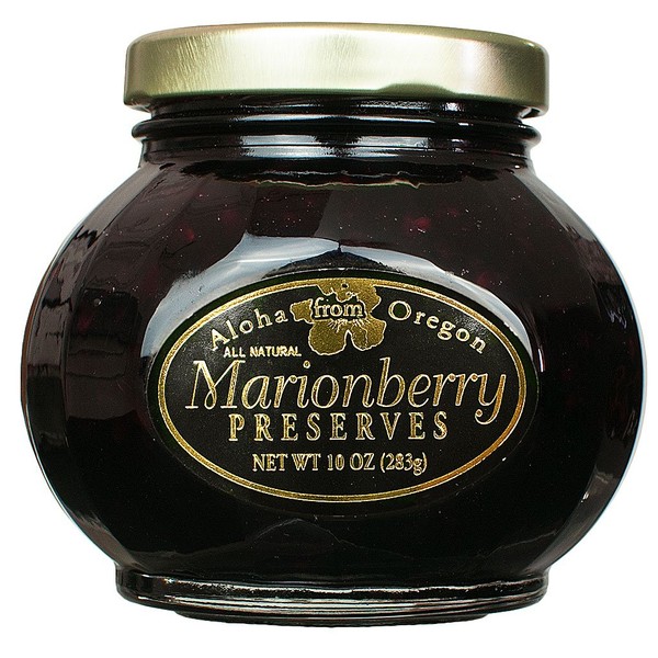 Aloha From Oregon makes its intensely-flavored Marionberry Preserve with native Oregon marionberry fruit. Couple local berries with tart and sweet flavors, and you get a perfect spread with a deep blackberry taste. Enjoy on toast or crackers. 10 oz.