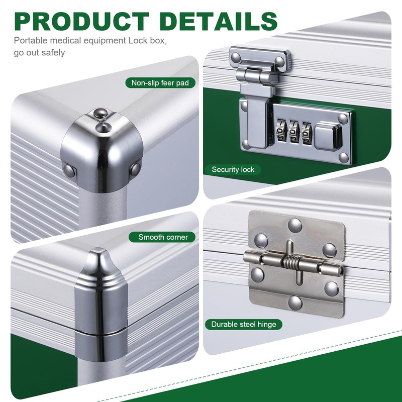 - Wide range of uses: medicine box with combination lock, medicine box is suitable for various scenarios, such as home, medical institutions, schools and so on. In these scenarios, the combination lock first aid box can effectively protect medicines and items. Prevent unauthorized access or abuse of medication.