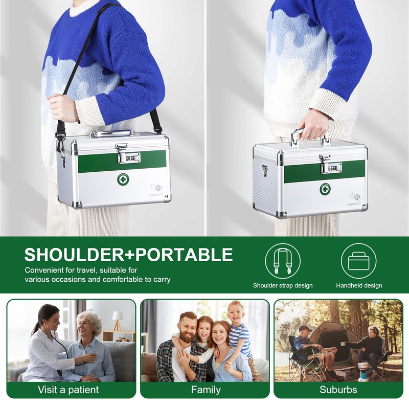 - Easy to carry: silver handled medical storage case, durable, lightweight and rust-free. Portable handheld and adjustable shoulder strap design, can be flexibly moved and carried, especially suitable for traveling and outdoor dangerous activities.