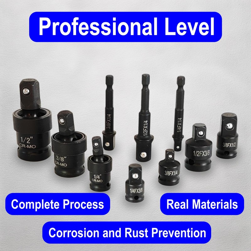 - HIGH QUALITY: The swivel socket set and impact socket adapter are made of chrome molybdenum steel, while the drill bit adapter is made of chrome vanadium steel. After a complete process of processing and phosphating rust prevention treatment, they both meet the requirements of extreme use scenarios.