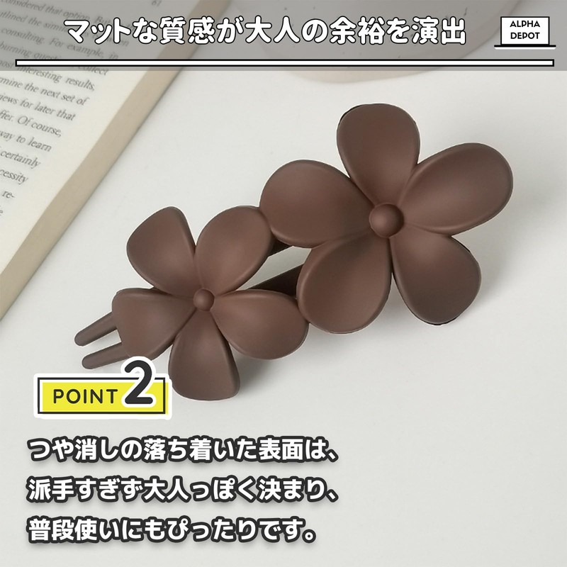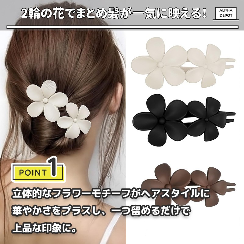 Alpha Depot 花形ヘアクリップ 3個セット 韓国風 大きめしっかり留まるマットフラワークリップ 通勤通学普段使いにも最適【ブラック・オフホワイト・ブラウン】