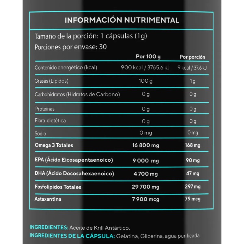 ✅ Omega Krill: Omega 3 (EPA + DHA), fosfolípidos, astaxantina