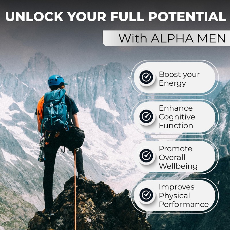 - WHY TAKE ALPHA MEN: Experience the Premium Blend of natural vitality with our powerful combination of shilajit, Ashwagandha, and Lions Mane. Boost your energy, enhance cognitive function, and promote overall wellbeing. Unlock your full potential and seize the day with our unique formula