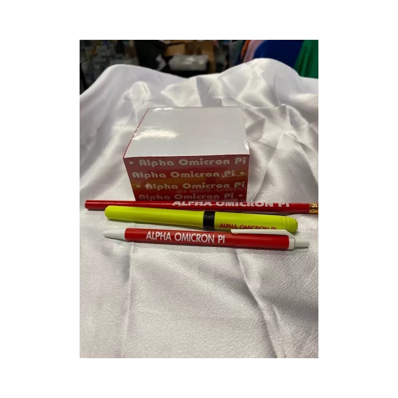Alpha Omicron Pi Combo Memo Cube, Pen, Pencil, Highlighter VINTAGE, RETIRED