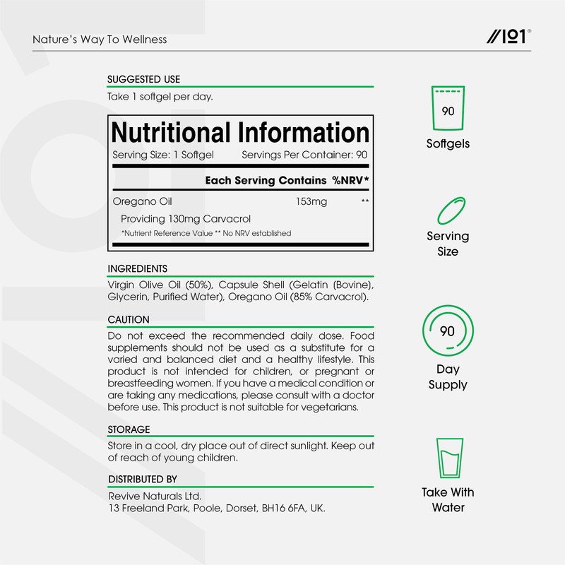 - ? OREGANO ESSENTIAL OIL: Crafted using a cold-pressed extraction method, our Oregano Oil Softgels ensure maximum purity and potency, delivering the world's highest concentration of Oregano Oil (85%+ Carvacrol).
