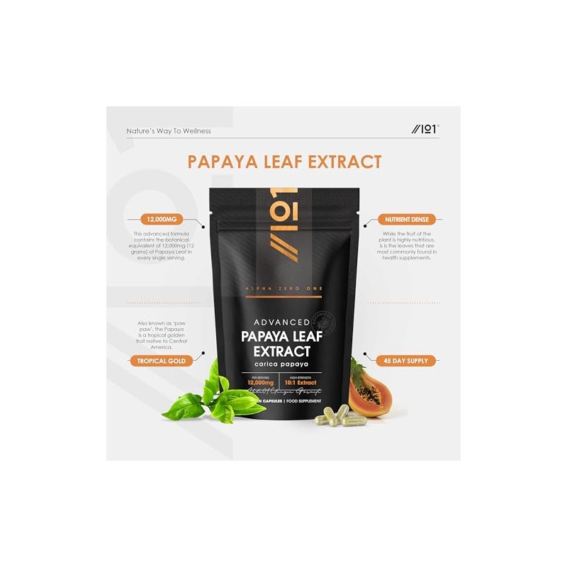 ALPHA01 Papaya Leaf Extract 12,000mg - Raw Carica Papaya Extract 10:1-45 Day Supply - 90 Vegan Capsules - by Alpha01?