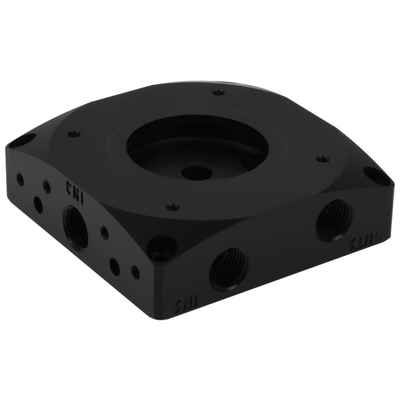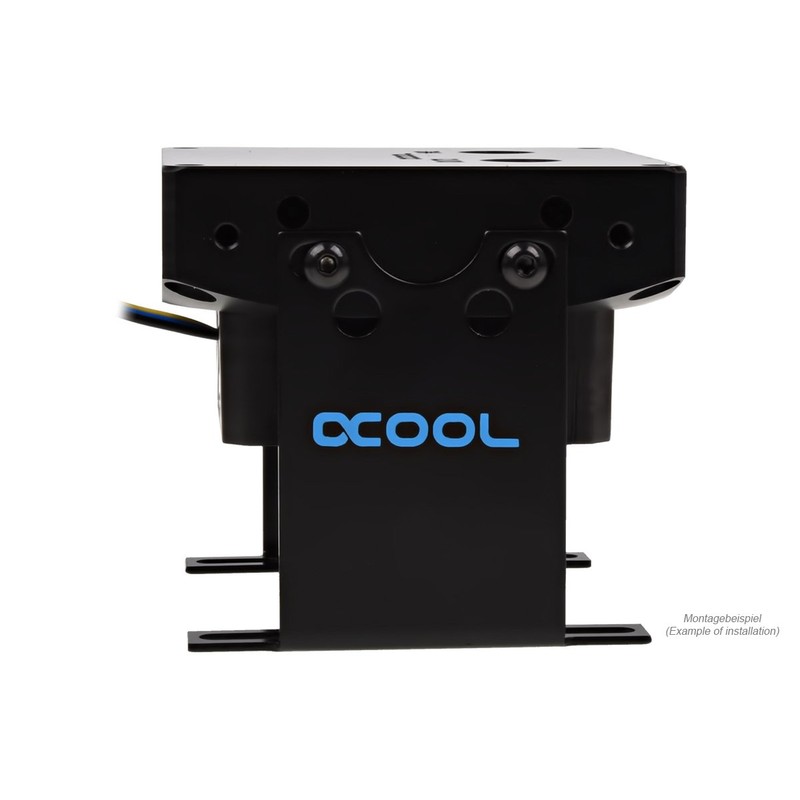 The tried and tested Laing DDC attachment is now available in the new design. For years, this attachment has been a benchmark. Small improvements have been made time and time again. The first big update differs both visually and technically in a few details. The principle: on the bottom there is space for the Laing DDC pump separated from the original attachment and on the front or on the top inlet and outlet. For even more flexibility, the ice blanket has three inlets and two outlets. Another feature is the new holder to give the whole unit a stable stand and complete the overall optical picture. Optional mounting in the 3.5 inch slot is still possible. The attachment can be converted into a complete expansion tank with the help of the expansion tank attachment, which has also been revised. Technical data: dimensions: 80 x 80 x 23 mm, material: acetal connections: 5 x 1/4 inch thread, box contents: 1 x Alphacool ice cover Laing DDC acetal attachment V.2, 3 x locking screw 1/4 inch, 2 x feet mounting material, instructions for installation: after installation, a small gap remains between the pump and the lid. The tightness is given as the O-ring is a form-fitting connection. Therefore, the screws are not too tight, it can cause damage to the lid.