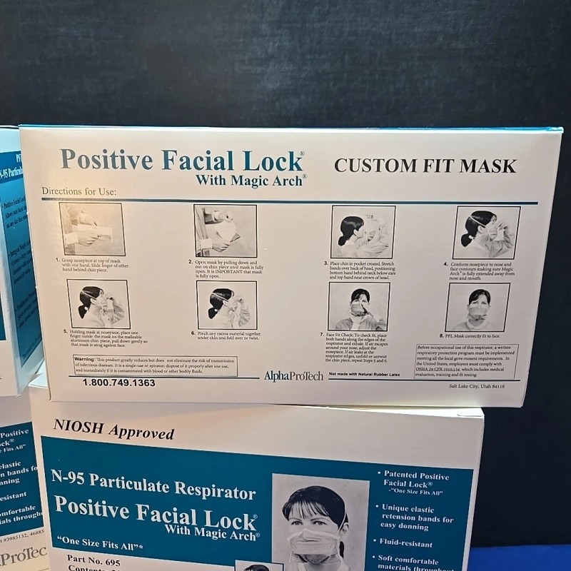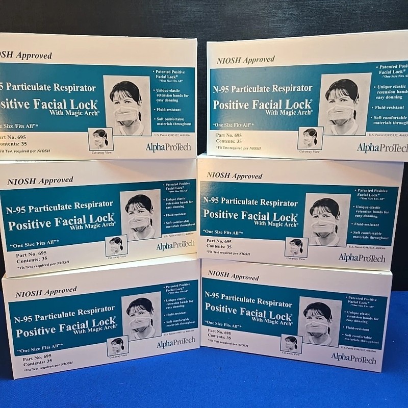 The product is a 210-piece N-95 particulate respirator face mask by AlphaProTech, designed for use in emergency medicine, dermatology, and various other medical disciplines. Made in the United States, this teal face mask is intended for protection against airborne particles and is suitable for a wide range of applications in healthcare, lab, and dental settings. With NIOSH certification, this high-quality face mask provides reliable filtration and is ideal for those working in environments where respiratory protection is essential.