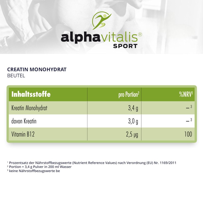 alphavitalis Creapure Creatine Monohydrate 500 g (mesh factor 200) - microfine premium raw material from Germany - vegan & super soluble - ideally dosed creatine powder with B12
