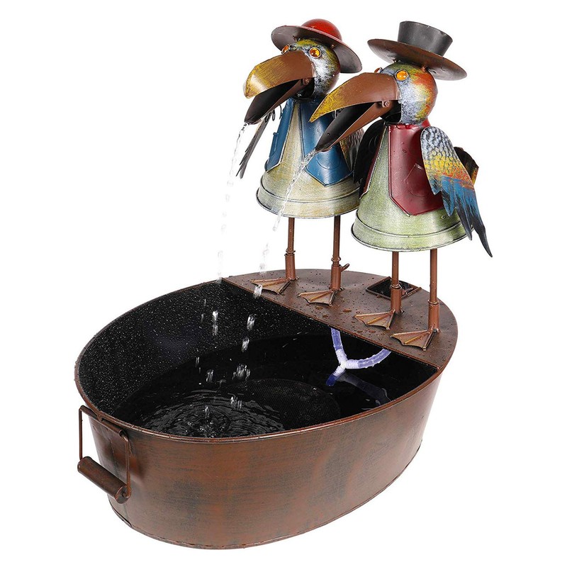 - RUSTIC LOOK: Metal fountain incorporates artful details such as shining eyes and colored wings to add rustic charm and beauty to your space