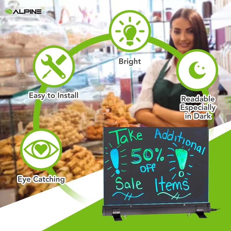- VERSATILE USE. This board is a great promotional tool for restaurants and bars to advertise the day’s specials, retail businesses that want to promote a special sales event, or establishments that participate in outdoor events. It can also be used at home for artistic neon-like articulation.