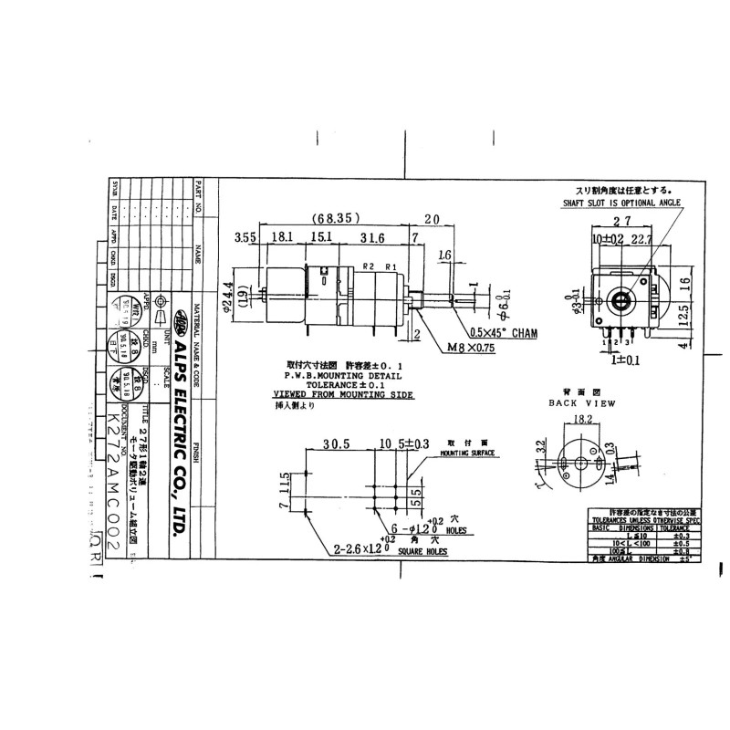 Alps NEW! Alps RK27112MC-100K Dual Audio Taper Manual/Motor Potentiometer!