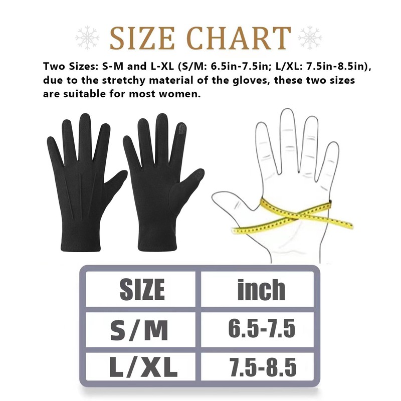 - TWO SIZES: S/M and L/XL, due to the elasticity of the glove material, these two sizes fit most women.please refer to the size chart.