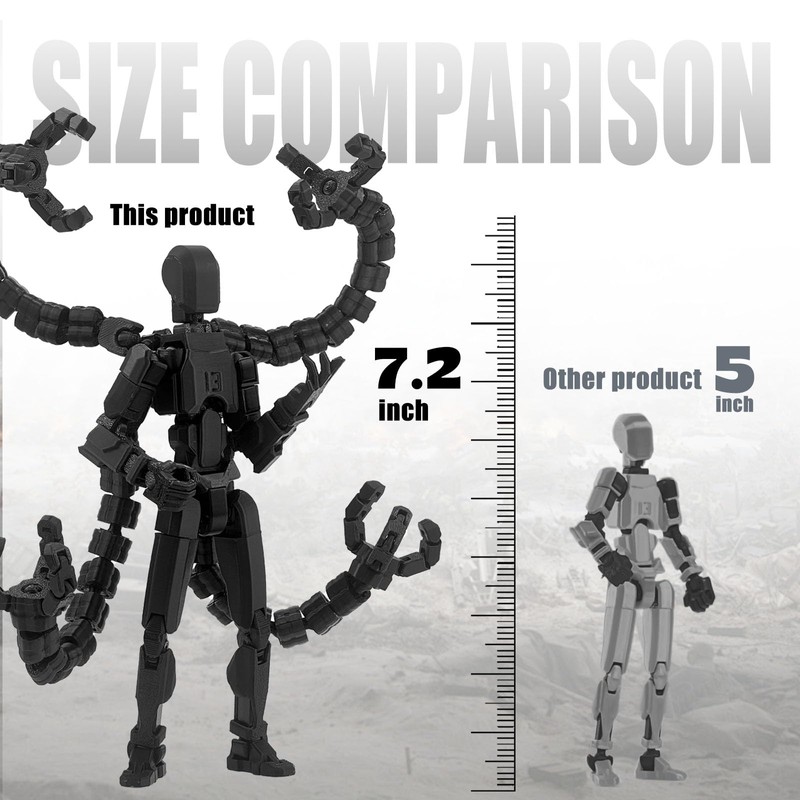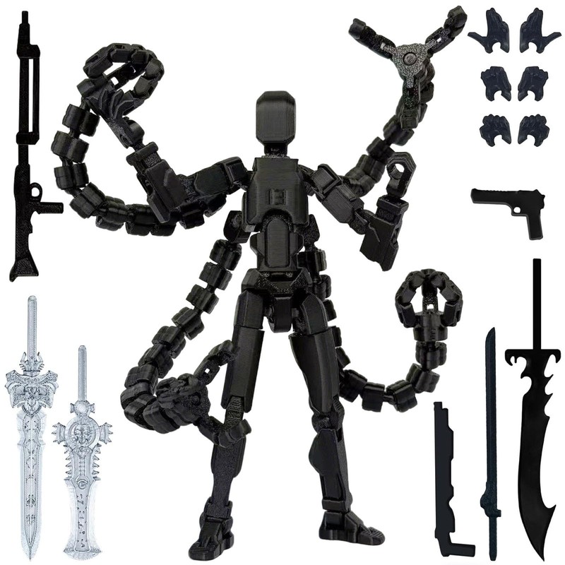 Already Assembled T13 Action Figure Accessories,Dummy 13 T13 Multi-Jointed Movable,for Collectors Desktop Decorations t-13 Movability 3D Printed Toys (Black, 7.2 Inch)