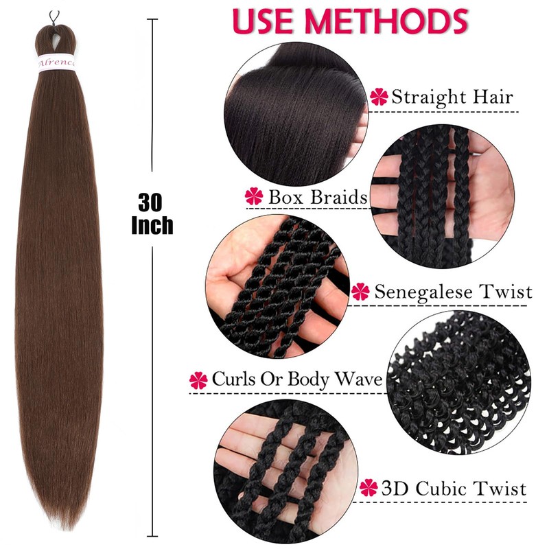 Alrence Pre Stretched Braiding Hair Long Braid 30 Inch 8 Packs Professional Braiding Hair Extensions Synthetic Crochet Twist Braids (30 Inch, 8#)