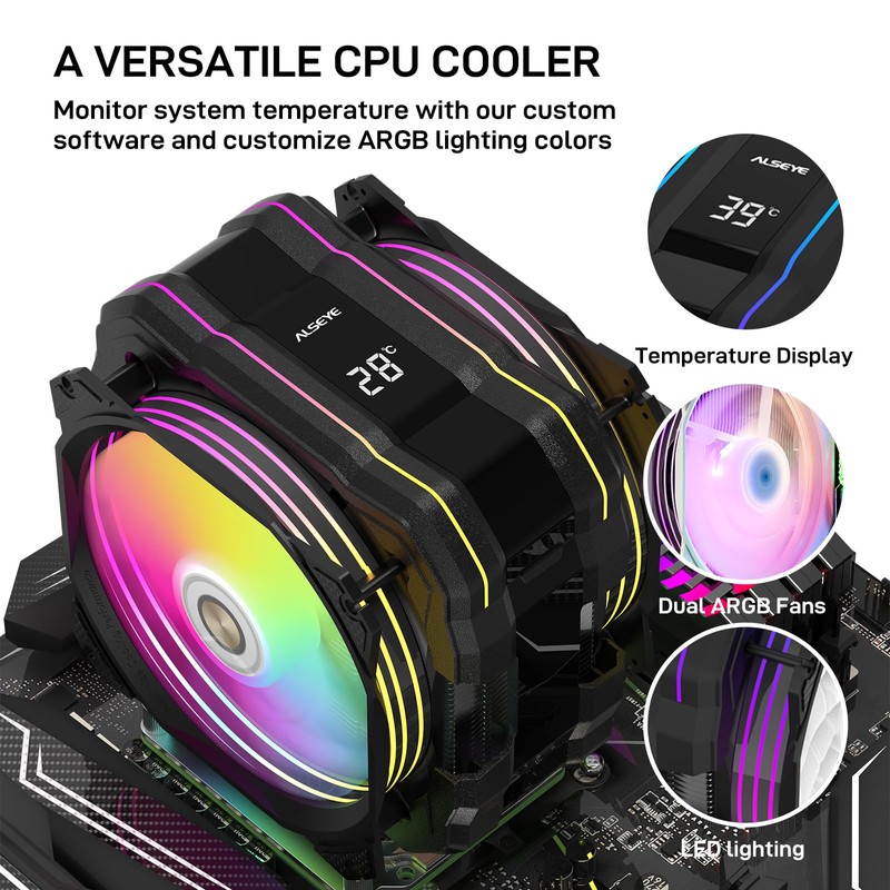 - ALSEYE creatively adds a temperature display on the air-cooled CPU cooler, which can intuitively read the temperature of the CPU surface in real-time.