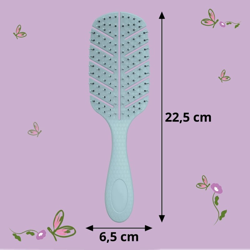 The non-tangle and painless bristles gently handle tangles and effectively detangle all hair types, both adults and children. Made of environmentally friendly plant fibres, reduces environmental impact without compromising effectiveness. Its flexible body adapts perfectly to the scalp and ensures a pleasant and irritation-free experience.