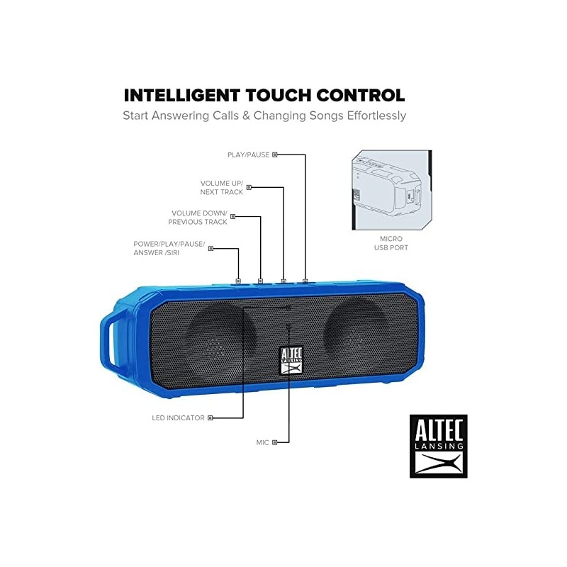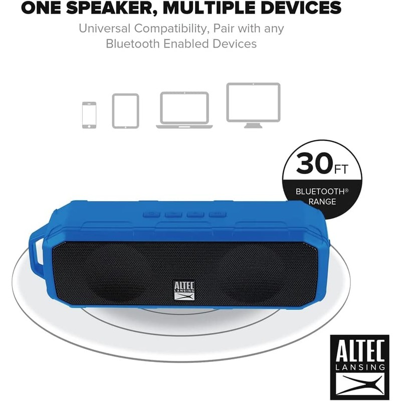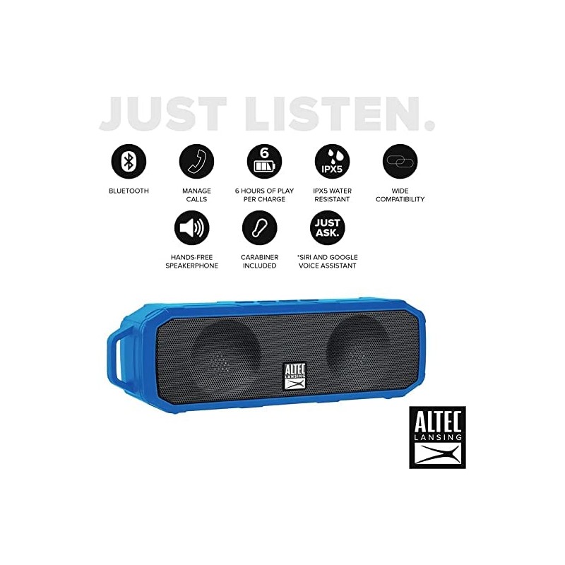 The Brand-new Fury Wireless Speaker from the audio pioneers Altec Lansing featuring ultra-portability. Additional Features. True Wireless Stereo Pairing and powerful sound makes the speaker an ideal travel and adventure companion.Fueled by powerful built-in battery and now wakeup your favourite voice assistants with “Just Ask” feature With the “Just Ask” feature, wakeup Siri or Google Assistant for news info, weather updates and much more by a simple voice command anytime anywhere Now stop changing your speakers, presenting universal compatibility, now you can pair with any Bluetooth enabled devices up to 30-foot range.