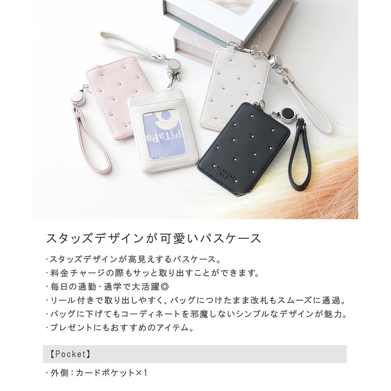 Alto Rose Pass Case, Commuter Passcase, IC Card, Lanyard Included, Reel Included, Dot Pattern, Polka Dots, Studs, Pink