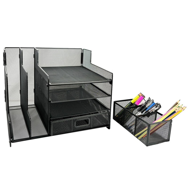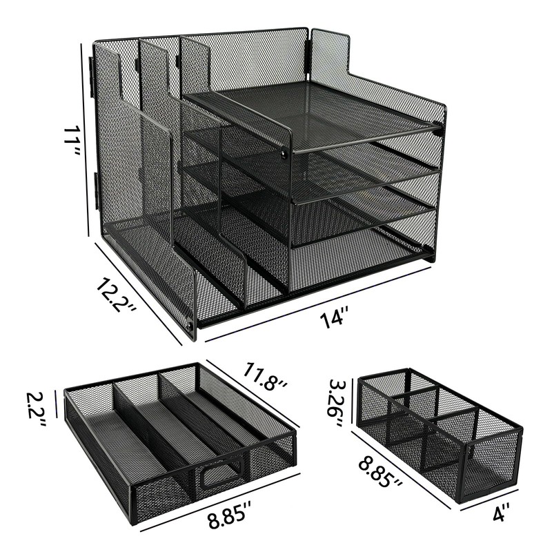 - đăPremium MaterialăThe office supplies desk organizer is made of lightweight durable metal mesh and reinforced with a solid steel frame that makes it have long-lasting strength and reliable performance.